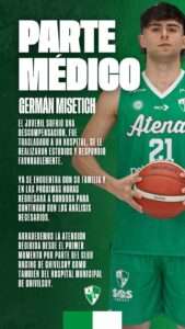 Cabe recordar que en la previa del partido el juvenil Germán Misetich sufrió una descompensación y fue trasladado al hospital más cercano donde se recuperó y continuará internado hasta realizarle todos los estudios necesarios.